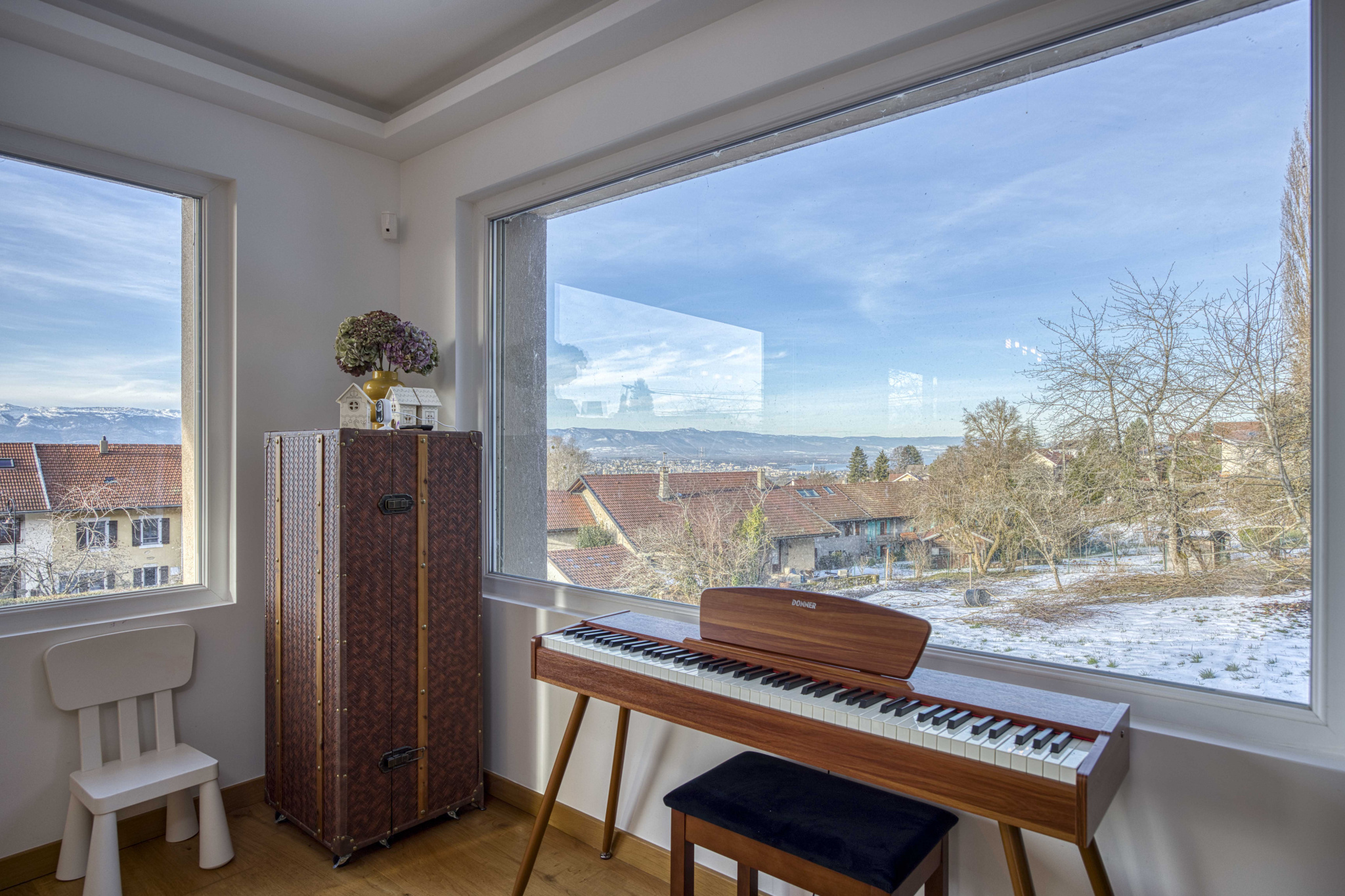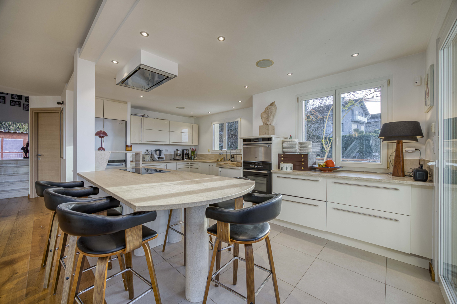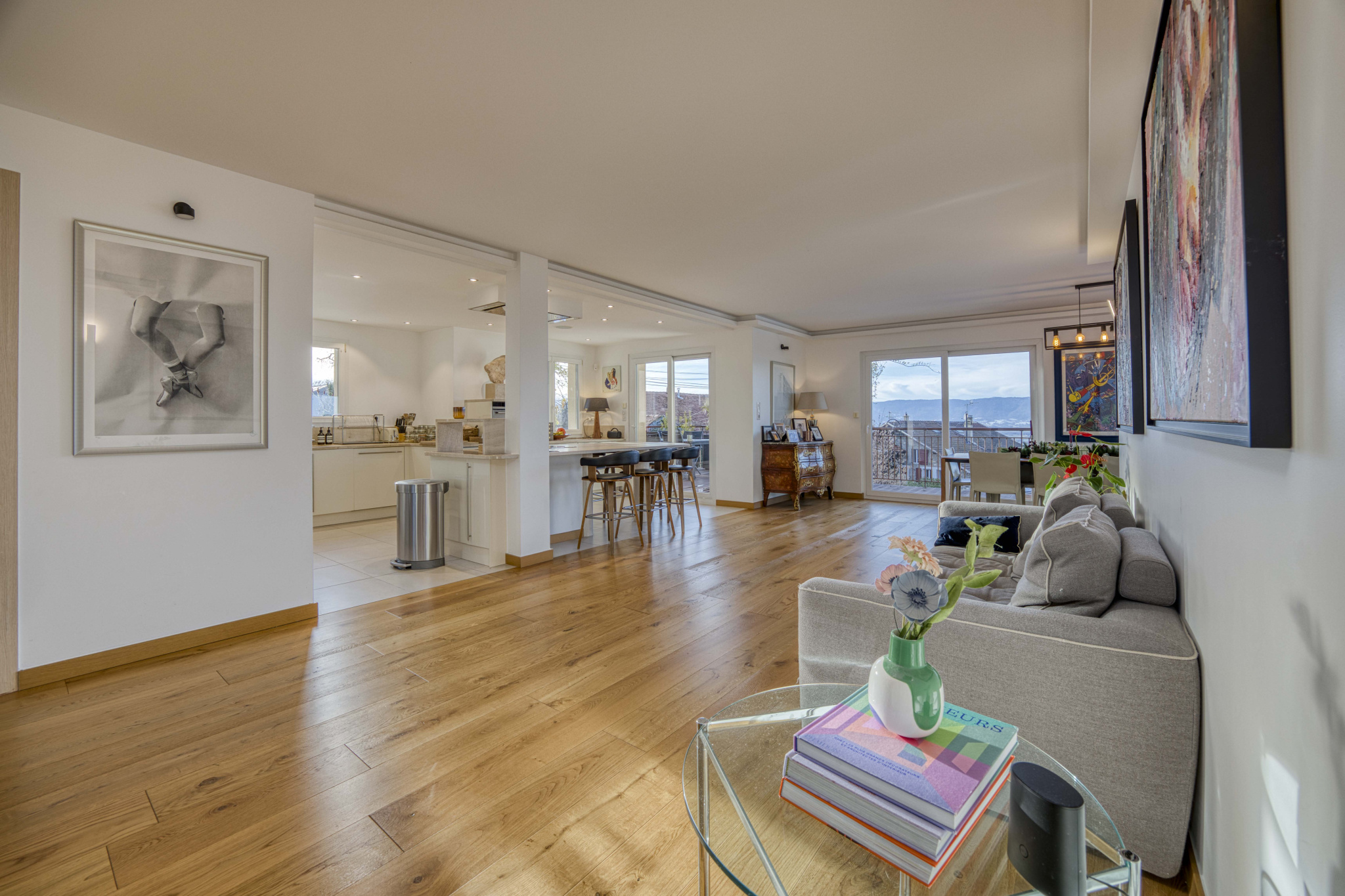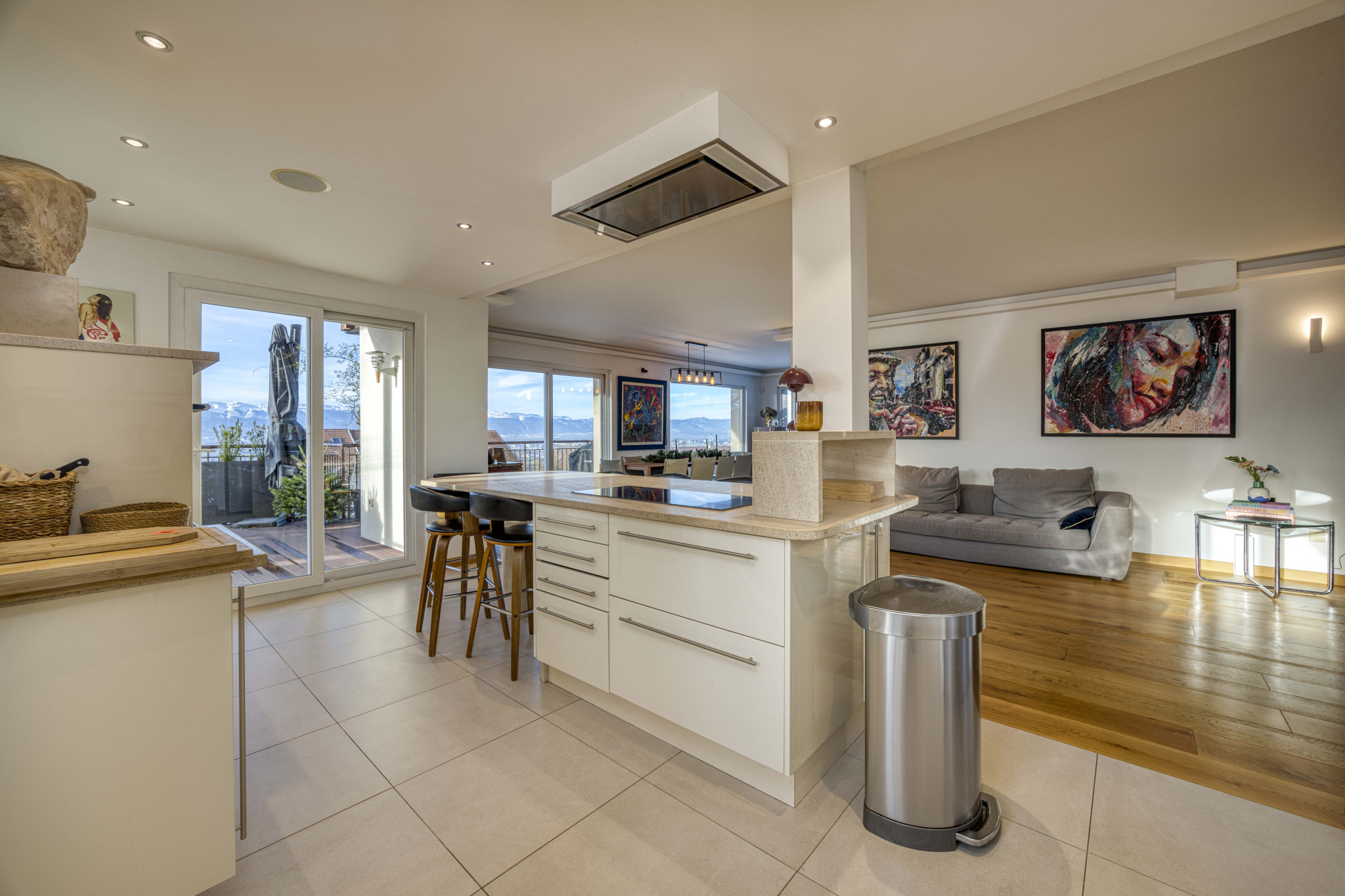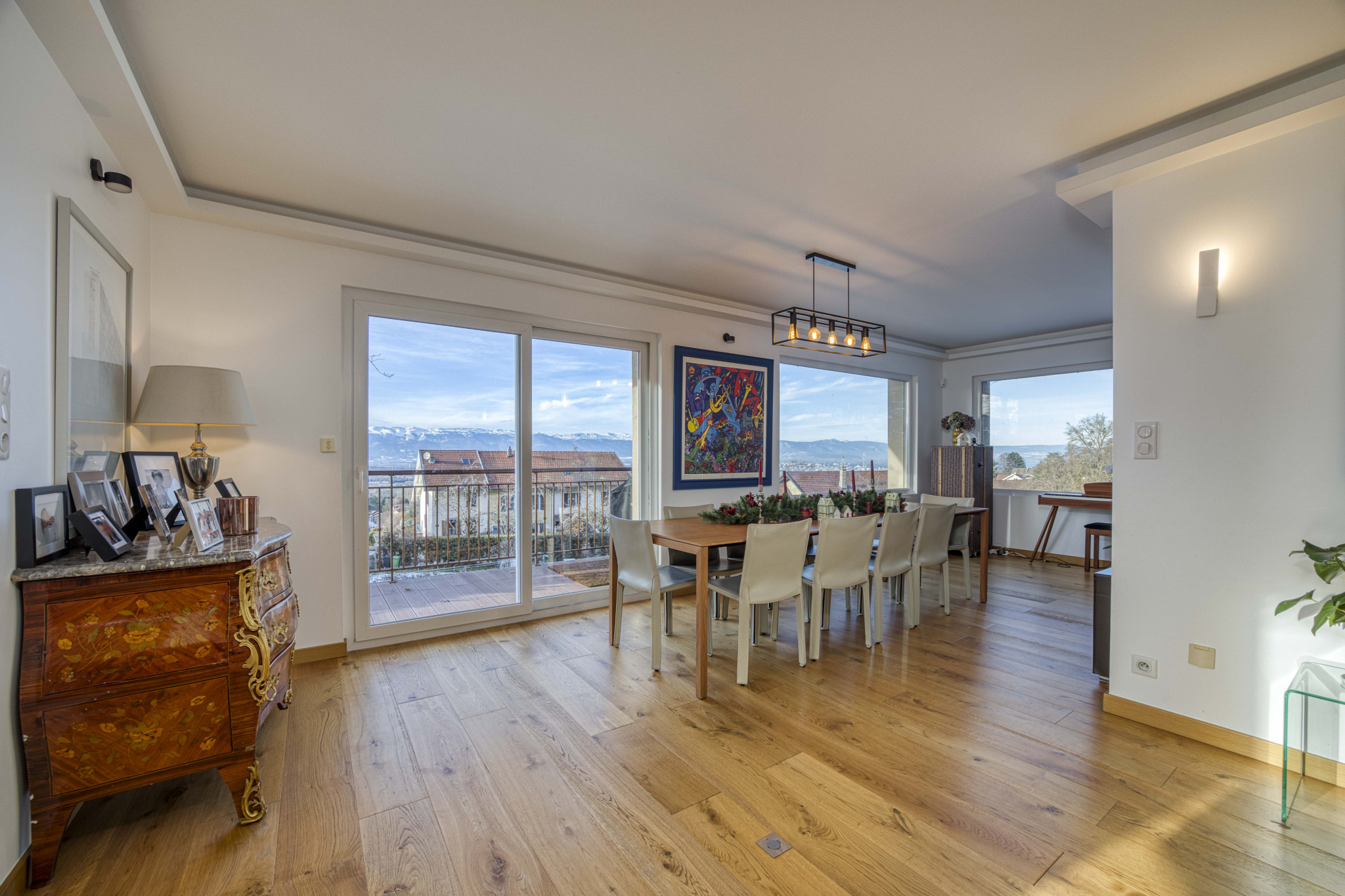 EXCLUSIVITE - Découvrez cette villa d'architecte, de haut standing, située dans un secteur recherché sur la commune d'Archamps. Implantée en position dominante sur les hauteurs d'Archamps, elle bénéficie d'une vue imprenable sur le bassin genevois, le Léman et le massif du Jura. Ce bien de 256m² habitables, édifié sur 3 niveaux, se compose; d'une entrée spacieuse avec rangements aménagés sur mesure, d'une pièce de vie lumineuse de 78m² avec une cuisine aux prestations haut de gamme et un accès à l'exterieur avec terrasse, d'une première chambre, d'une salle d'eau WC et d'un cellier buanderie. A l'étage se trouvent 3 grandes chambres dont une suite parentale avec une salle d'eau WC et un dressing de 15m² pouvant offrir une autre fonction, une salle de bains avec douche et baignoire et WC indépendants. Au rez-de chaussée, une chaufferie, deux garages, et un studio indépendant complètent ce bien. Edifiée en 2010, sur une parcelle de 456m², cette villa a été entièrement rénovée avec des matériaux de qualité et une isolation extérieure. La maison est équipée d'une aspiration centralisée et d'un chauffage au sol avec une chaudière gaz récente de 2022 ainsi que de climatisations réversibles. Elle offre un confort de vie, de part ses prestations ainsi que de son emplacement dans un environnement prisé, calme et résidentiel, proche de la nature mais également des commodités présentes à Archamps (boulangerie, pharmacie, crèche, écoles maternelle et primaire etc...) et la proximité immédiate de Genève.